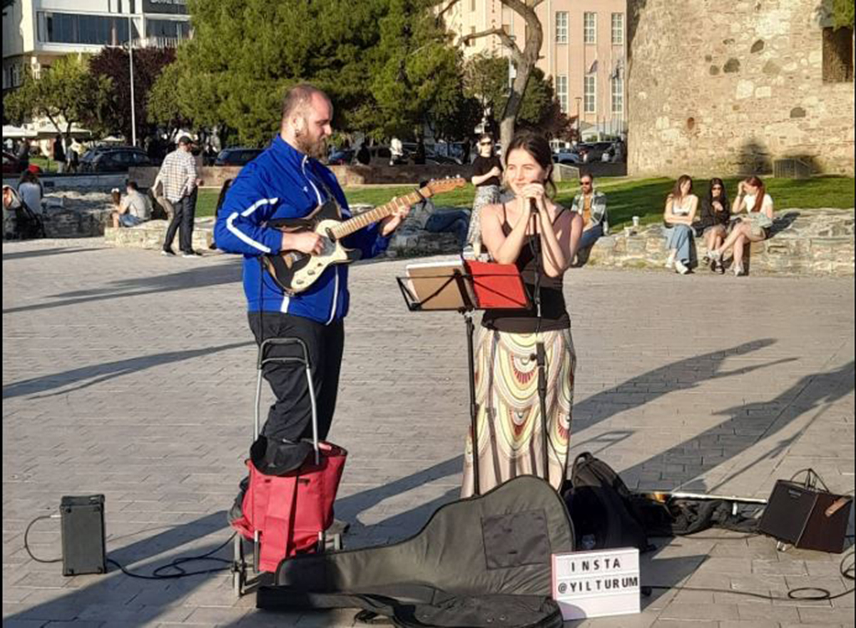 Πρόστιμο ύψους 300 ευρώ επιβλήθηκε το απόγευμα της Κυριακής σε μουσικούς του δρόμου οι οποίοι τραγουδούσαν με τη χρήση μικροφωνικής στη Νέα Παραλία, στη Θεσσαλονίκη, μπροστά στον Λευκό Πύργο.