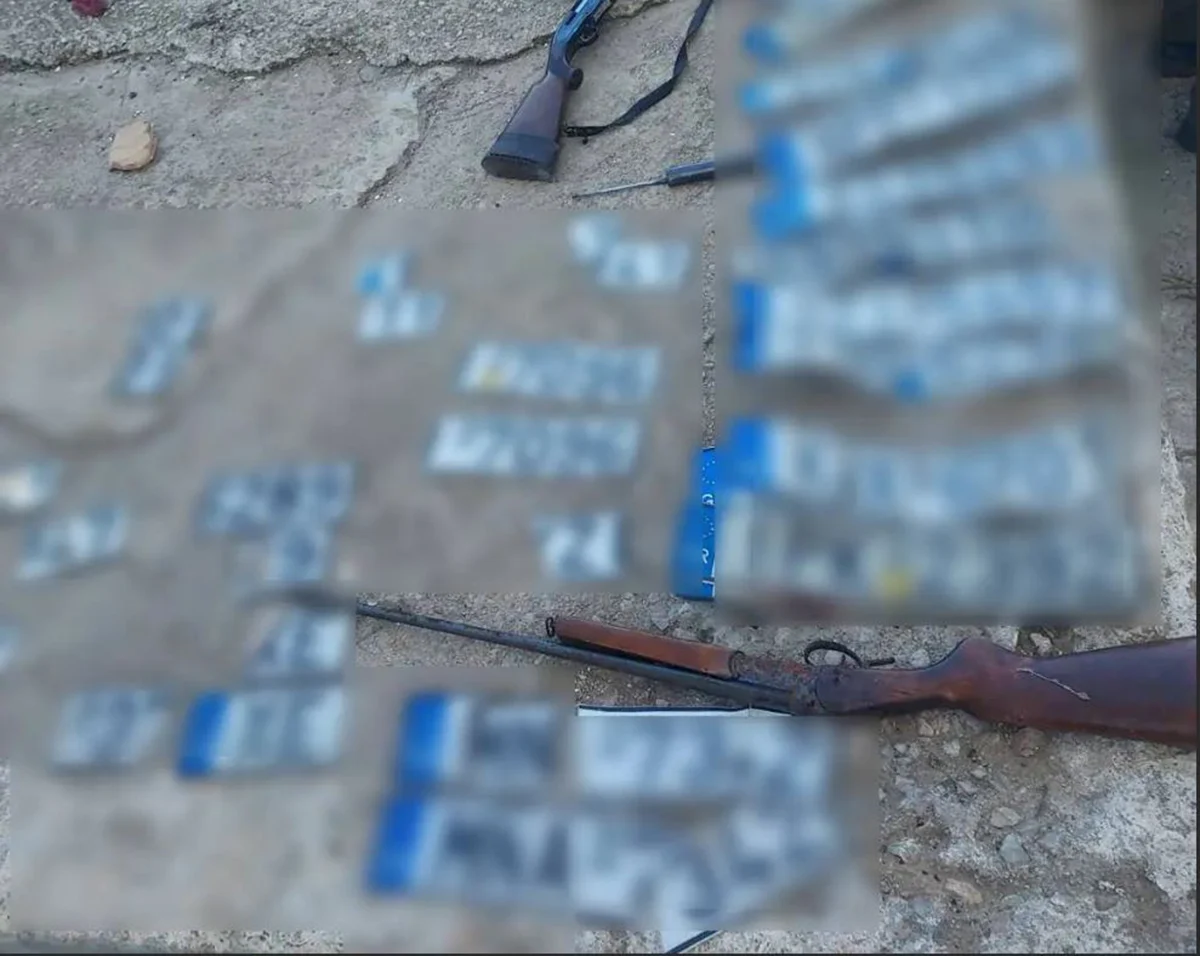 Επιπλέον, πραγματοποιήθηκαν στοχευμένες έρευνες σε σπίτια, όπου εντοπίστηκαν σε κρύπτη εντός σηπτικής δεξαμενής, δύο κυνηγητικές καραμπίνες, για τις οποίες είχε δηλωθεί κλοπή το 2025 από τις περιοχές του Περάματος και της Θήβας και πλήθος πινακίδων κυκλοφορίας, η προέλευση των οποίων διερευνάται.