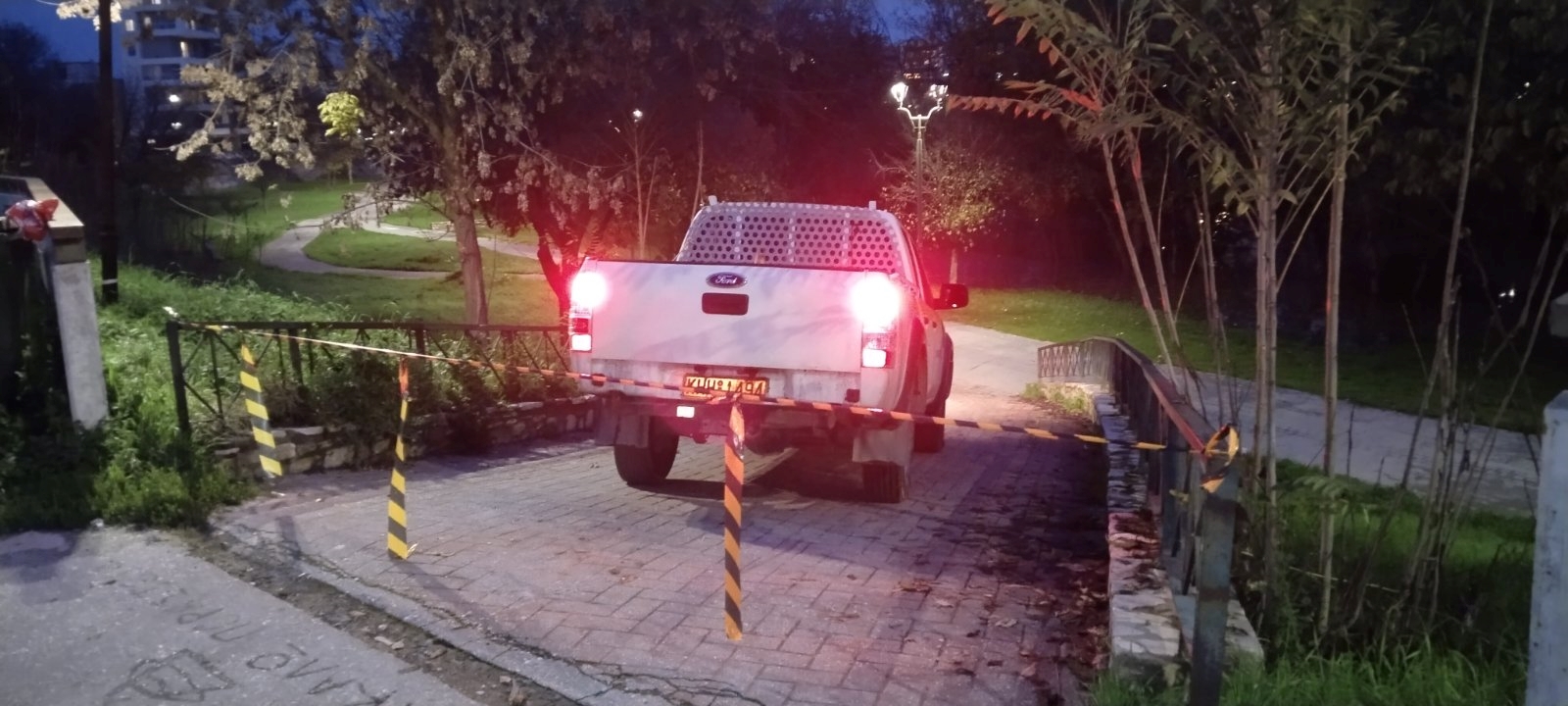 Στο βίντεο έχουν καταγραφεί εργαζόμενος ντελίβερι και οδηγός μηχανής να έχουν σταματήσει στην άκρη, σε σημείο που τα νερά δεν «κατέβαιναν» με τόση δύναμη για να μην τους παρασύρει. Ακινητοποιημένα στο φανάρι της διασταύρωσης είναι και αυτοκίνητα.