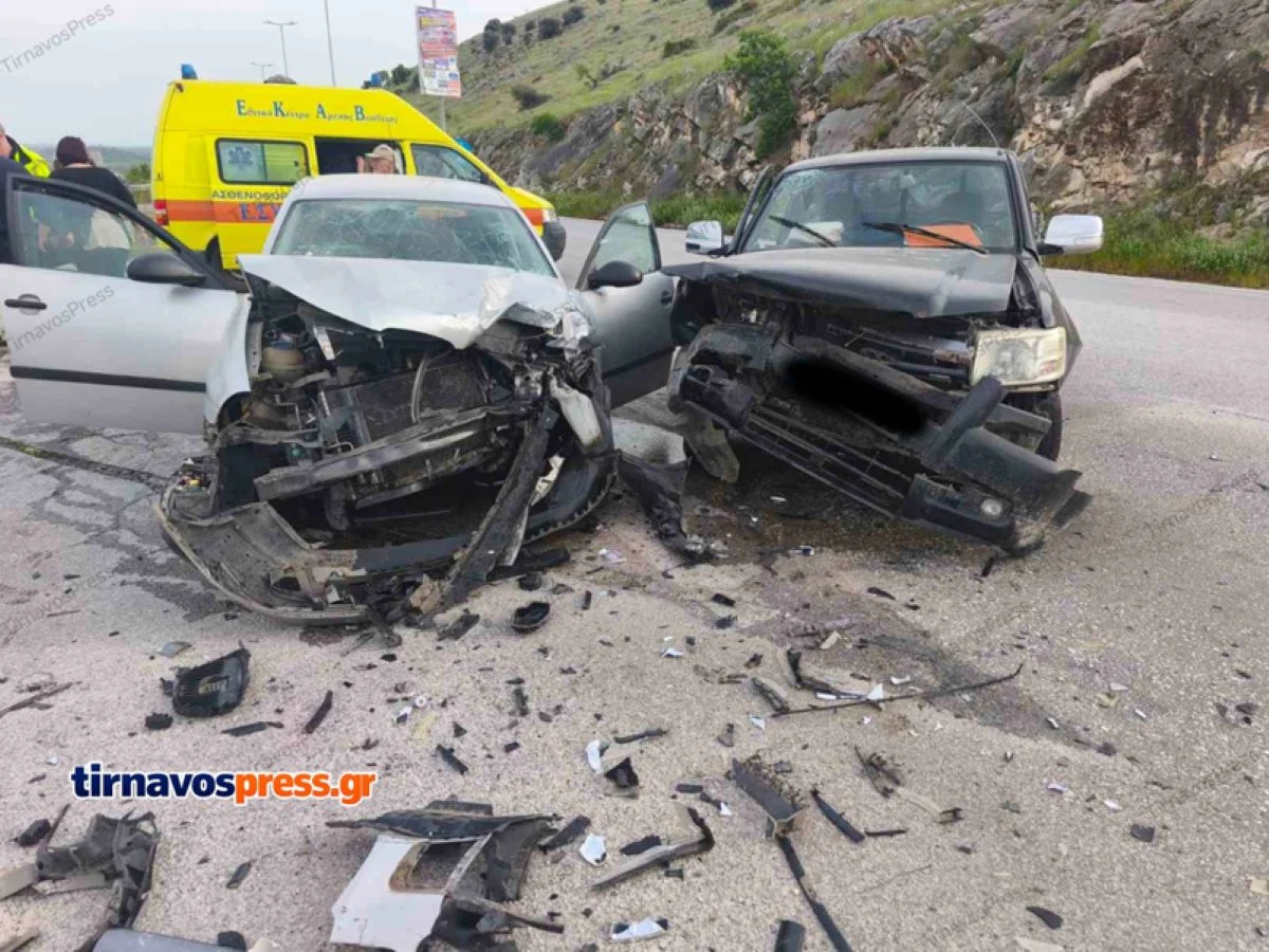 Σύμφωνα με το TirnavosPress.gr, δύο αυτοκίνητα, ένα επιβατικό και ένα αγροτικό όχημα, συγκρούστηκαν κάτω από αδιευκρίνιστες μέχρι στιγμής συνθήκες στη διασταύρωση. Η σύγκρουση ήταν σφοδρή, με αποτέλεσμα τον τραυματισμό συνολικά πέντε ατόμων.