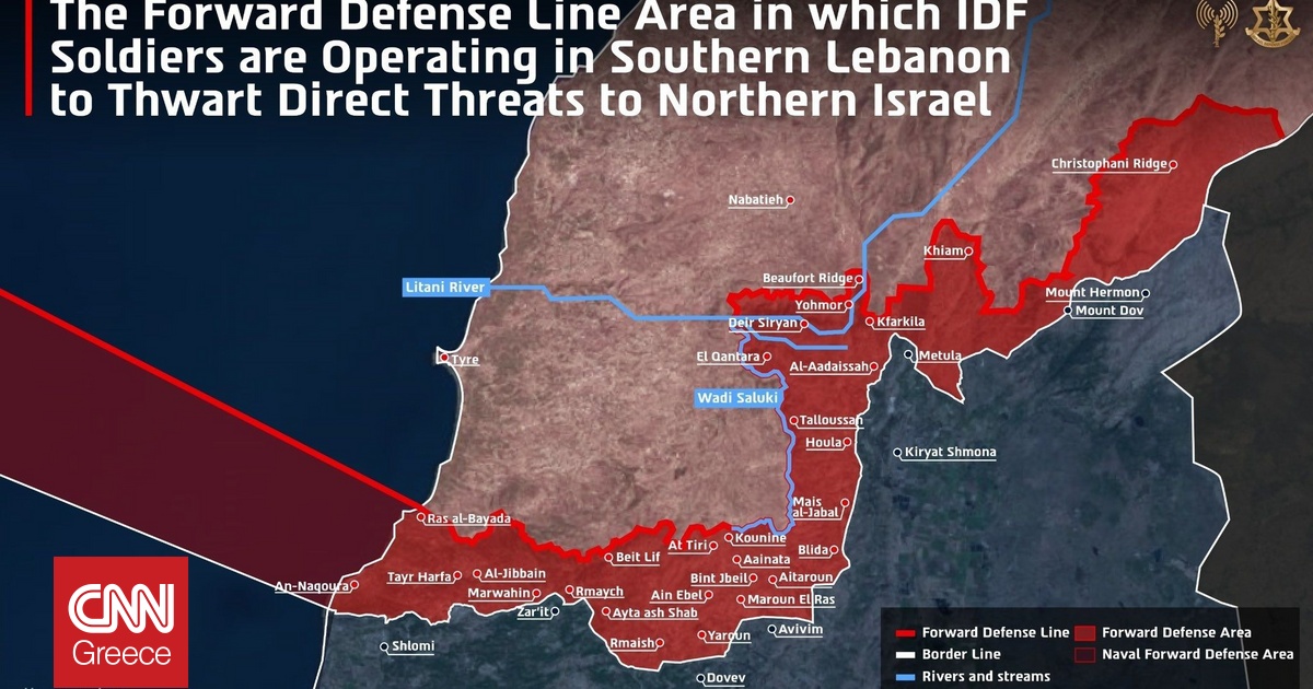 Αυτή είναι η ζώνη επιχειρήσεων του ισραηλινού στρατού στο Λίβανο – Από την Μεσόγειο μέχρι την Συρία