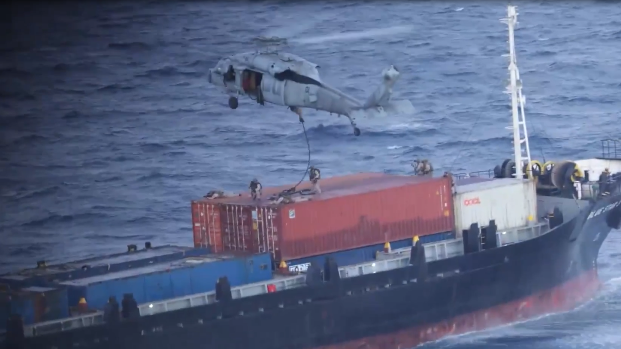 Ένα συνοδευτικό βίντεο έδειχνε αμερικανικές δυνάμεις να προσδένονται με σχοινιά από ένα ελικόπτερο στο σκάφος.