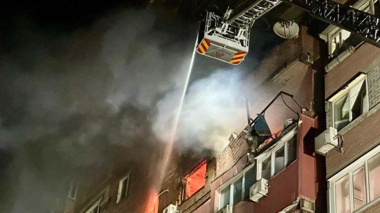 Dnipro right now ‼️ russian drone struck an apartment building in the middle of the night. pic.twitter.com/REYdk8fSjY