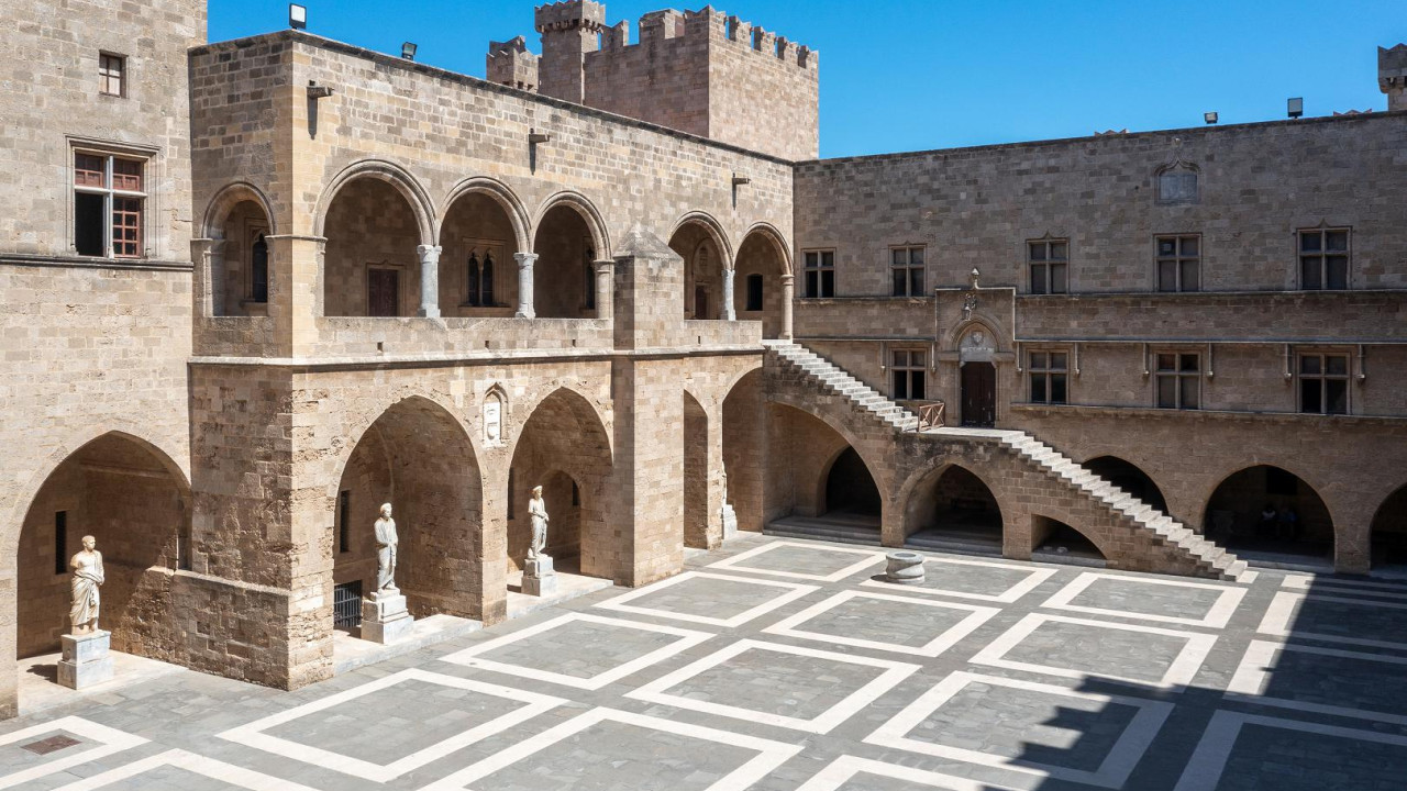 Στη βορειοδυτική πλευρά της μεσαιωνικής πόλης της Ρόδου και συγκεκριμένα στο υψηλότερο σημείο του κάστρου, βρίσκεται το επιβλητικό Παλάτι του Μεγάλου Μαγίστρου, γνωστό και ως Καστέλο, που αποτελεί ένα από τα σπουδαιότερα, αν όχι το σπουδαιότερο, μνημεία από την εποχή των Ιπποτών στο νησί. Σύμφωνα με πρόσφατες έρευνες το Παλάτι οικοδομήθηκε πάνω στα θεμέλια ενός αρχαίου ναού που ήταν αφιερωμένος στον θεό Ήλιο, στο ίδιο σημείο που πιθανόν να βρισκόταν στην αρχαιότητα και ο Κολοσσός της Ρόδου. Μία προγενέστερη εκδοχή, ήθελε τον Κολοσσό να βρίσκεται στην τοποθεσία Μανδράκι, που αποτελεί ένα από τα τρία συνολικά λιμάνια της πόλης. Το μεσαιωνικό ανάκτορο οικοδομήθηκε τον 7ο αιώνα ως μία Βυζαντινή Ακρόπολη φρουριακού τύπου. Οι Οσπιτάλιοι Ιππότες αφού κατέκτησαν την Ρόδο μαζί με άλλα νησιά, όπως το Καστελλόριζο και την Κάλυμνο (1309), το μετέτρεψαν στο διοικητικό τους κέντρο και όρισαν ως βάση τους τα ανάκτορα του Μεγάλου Μαγίστρου.