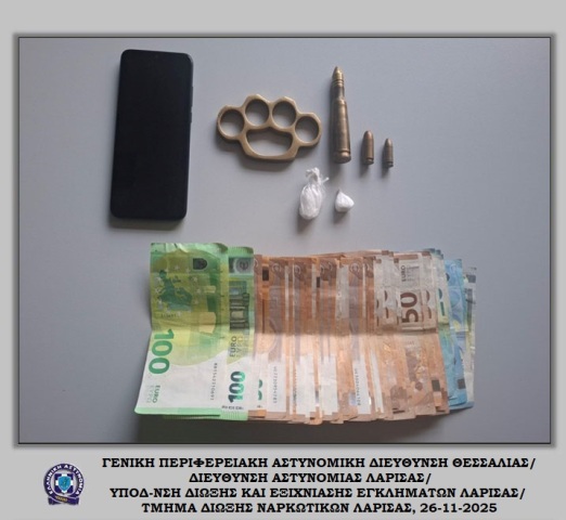 Συνελήφθη, χθες (22-04-2026) το μεσημέρι στη Λάρισα, από αστυνομικούς της Ομάδας Δίκυκλης Αστυνόμευσης (ΔΙ.ΑΣ.) Λάρισας, ανήλικος ημεδαπός, διότι στην κατοχή του βρέθηκαν και κατασχέθηκαν μία νάιλον συσκευασία με ακατέργαστη κάνναβη, βάρους -6,4- γραμμαρίων και -1- ζυγαριά ακριβείας με υπολείμματα κάνναβης.