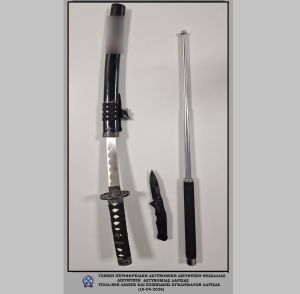 - ένα σπαθί τύπου σαμουράι, με τη θήκη του &