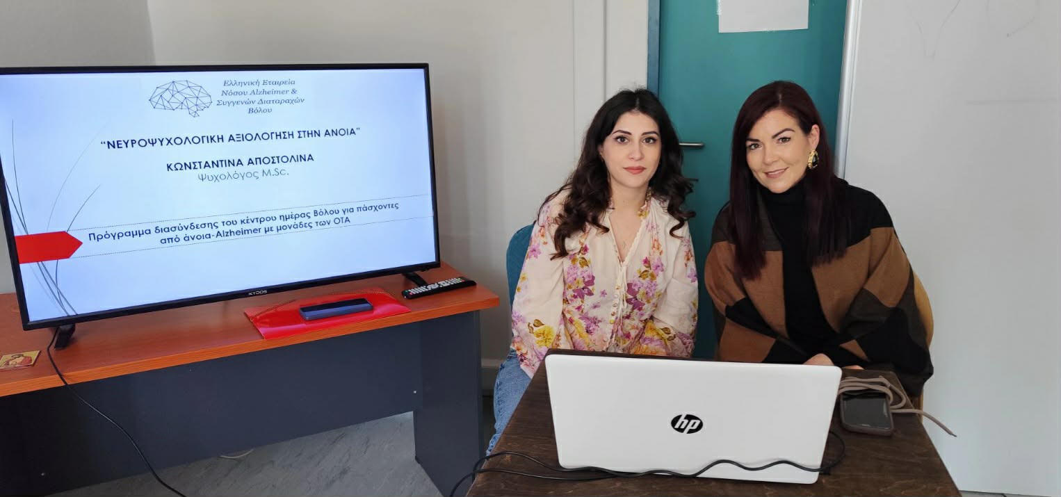 Η δράση υλοποιήθηκε κατόπιν πρόσκλησης του προσωπικού του Κέντρου Υγείας Βελεστίνου, με τις εργασίες να φιλοξενούνται στις εγκαταστάσεις της δομής. Κατά τη διάρκεια της συνάντησης, αναπτύχθηκαν καίρια ζητήματα γύρω από τη νόσο Alzheimer, με τις ψυχολόγους της ΕΕΝΑΣΔ να εμβαθύνουν στην κλινική πράξη. Συγκεκριμένα, η ψυχολόγος Κωνσταντίνα Αποστολίνα παρουσίασε την κλινική εικόνα της άνοιας και τις νευροψυχολογικές δοκιμασίες, αναλύοντας παράλληλα τα συμπεριφορικά και ψυχολογικά συμπτώματα των ασθενών. Στη συνέχεια, η ψυχολόγος Αφροδίτη Κριτσιμάλη εστίασε στις στρατηγικές διαχείρισης των συμπτωμάτων αυτών. Το σεμινάριο ολοκληρώθηκε σε κλίμα εξαιρετικής συνεργασίας, με τους συμμετέχοντες να εκφράζουν ιδιαίτερα θετικά σχόλια και να θέτουν τις βάσεις για μελλοντικές κοινές δράσεις με επίκεντρο την αναβάθμιση των παρεχόμενων υπηρεσιών υγείας.Για περισσότερες πληροφορίες οι ενδιαφερόμενοι μπορούν να απευθύνονται στην: Κωνσταντίνα Αποστολίνα, ψυχολόγο, καθημερινά 08:00 – 16:00, Τοπάλη 7 – Ιάσονος, Βόλος – 4ος όροφος, στο τηλέφωνο επικοινωνίας 2421102323 ή στο email: dkentrohmeras@gmail.com .