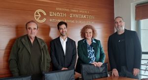 Τα γραφεία της Ένωσης Συντακτών Θεσσαλίας, Στερεάς Ελλάδας και Εύβοιας (ΕΣΗΕΘΣΤΕ-Ε) στον Βόλο επισκέφθηκαν η Υπεύθυνη Τύπου του Ευρωπαϊκού Κοινοβουλίου στην Αθήνα, κα Άννα Ευσταθίου, και το στέλεχος του Γραφείου Τύπου κ. Σταύρος Σαμουηλίδης.