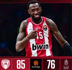 Οι παίκτες της ομάδας του Πειραιά ήθελαν και τη νίκη επί της αδιάφορης βαθμολογικά Αρμάνι Μιλάνο στην 38η και τελευταία αγωνιστική για να «σφραγίσουν» την πρωτιά και να μην εξαρτώνται από τη Βαλένθια. Και την πήραν με 85-76 παρά τα 15/36 τρίποντα της ιταλικής ομάδας που δεν είχε τίποτα να χάσει, αλλά και τίποτα να κερδίσει και έπαιζε χωρίς άγχος.