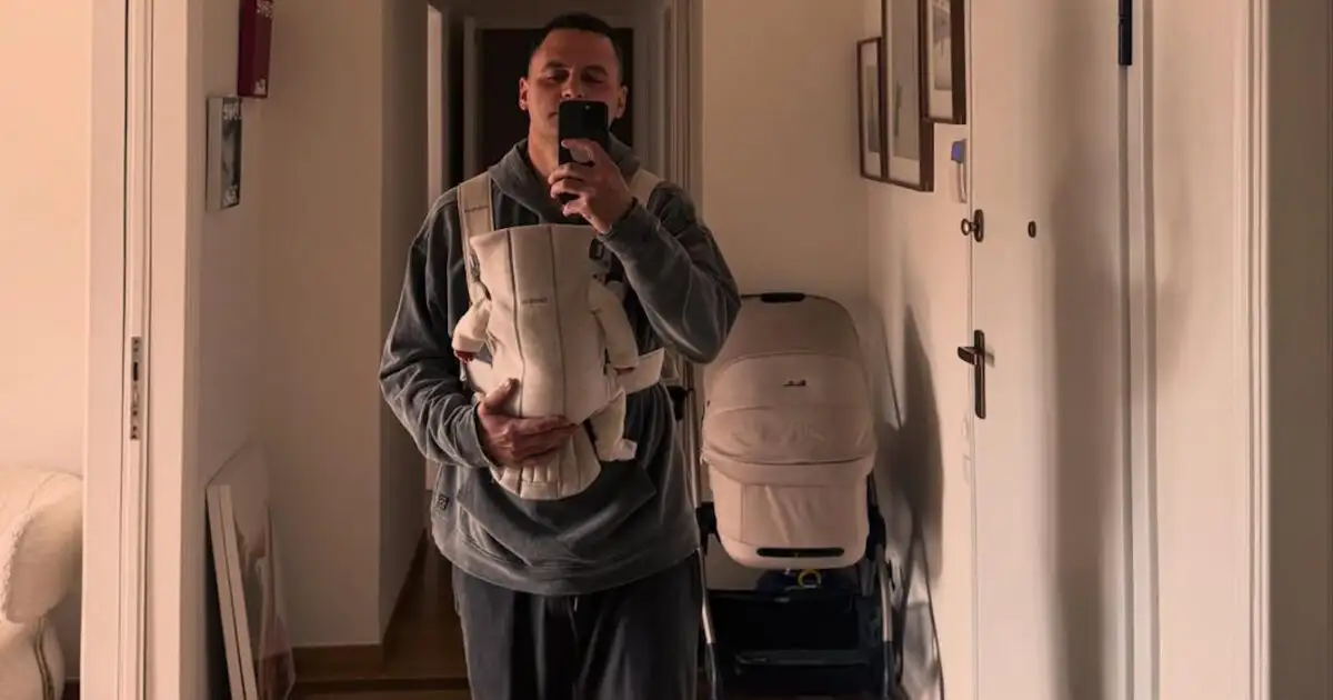 Ο επιχειρηματίας ανέβασε μία selfie με το μωράκι τους, το οποίο ήταν στον μάρσιπο, τον οποίο κρατούσε στοργικά.