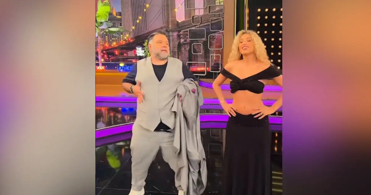 «Antigoni, μπορείς να μου μάθεις λίγο πώς πρέπει να κουνηθώ με το Jalla;», ακούγεται να λέει ο Γρηγόρης Αρναούτογλου.
